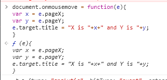 Show X & Y in Electron App document.onmousemove = function(e){ var x = e.pageX; var y = e.pageY; e.target.title = "X is "+x+" and Y is "+y; }